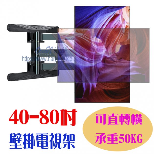 適用尺寸:40吋-80吋(以實際壁掛孔距為主)
