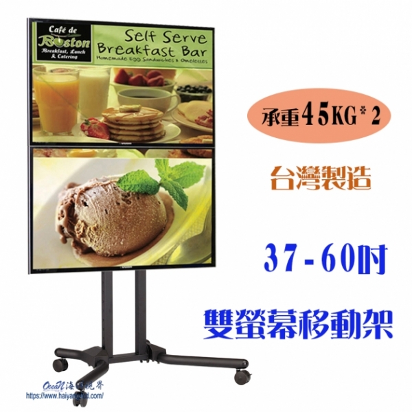 OU-1039-2A 台灣製造 37-60吋上下雙螢幕電視推車 移動架 落地架 立架 廣告看板 電視牆