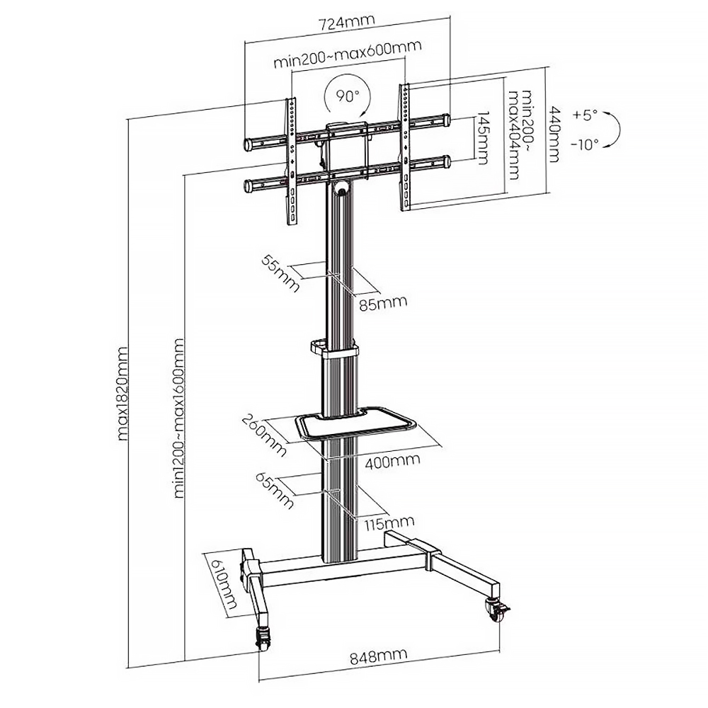 底座至電視架中心距離為120~160cm(上下高度可調整)