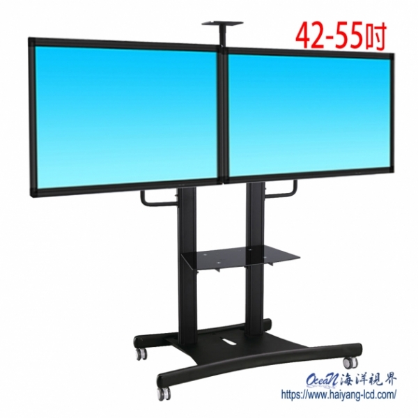 42-55吋 雙螢幕電視推車 移動架 落地架 立架 廣告看板 電視牆