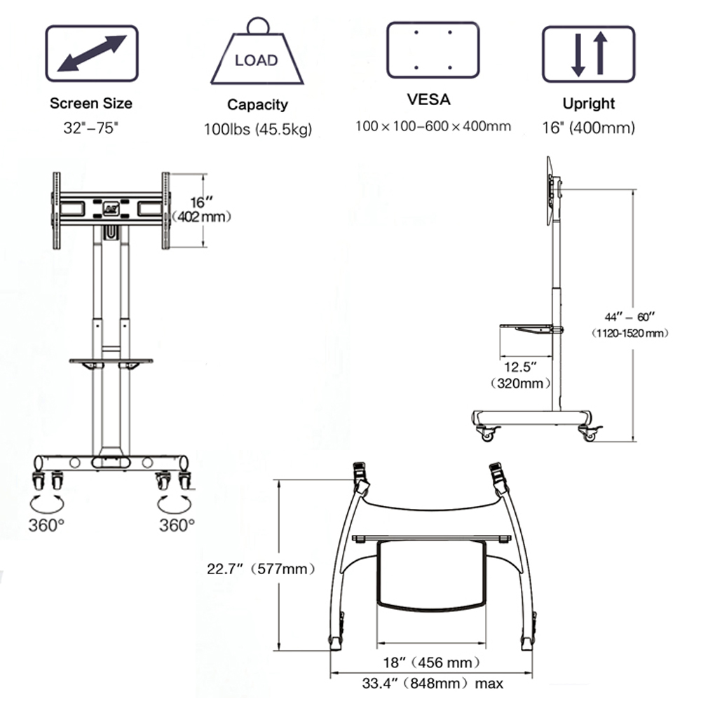 高級合金鋼 32-75吋 可移動式液晶電視立架